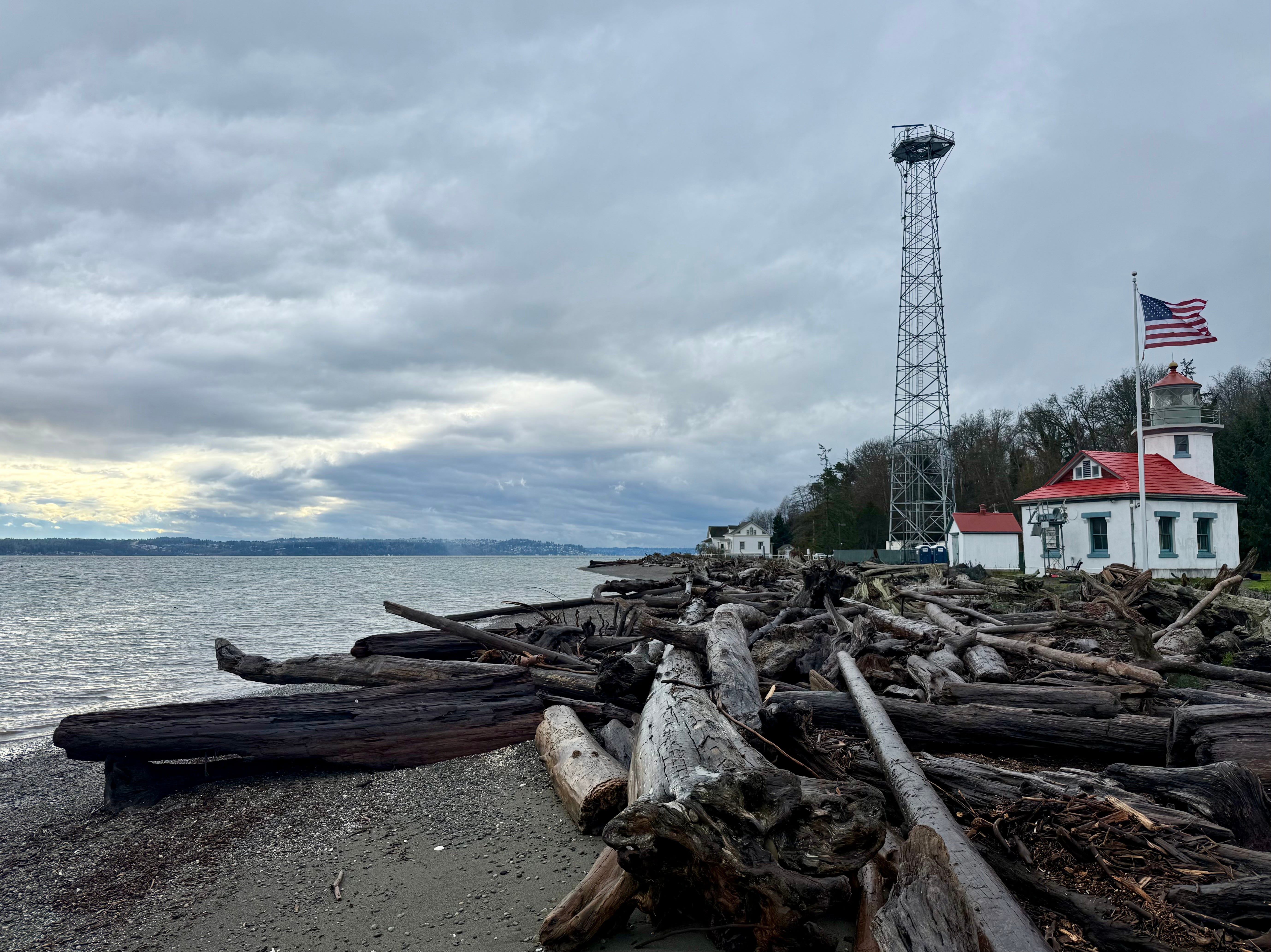 Point Robinson sits at the island’s easternmost point, a kicked-out knee of land jutting into Poverty Bay just across the water from Federal Way. It has two beaches: a rocky one facing southeast and a sandier, quieter one facing northeast protected by a hidden sand bar that only emerges during the lowest tides (and is the reason for the light house in the first place).